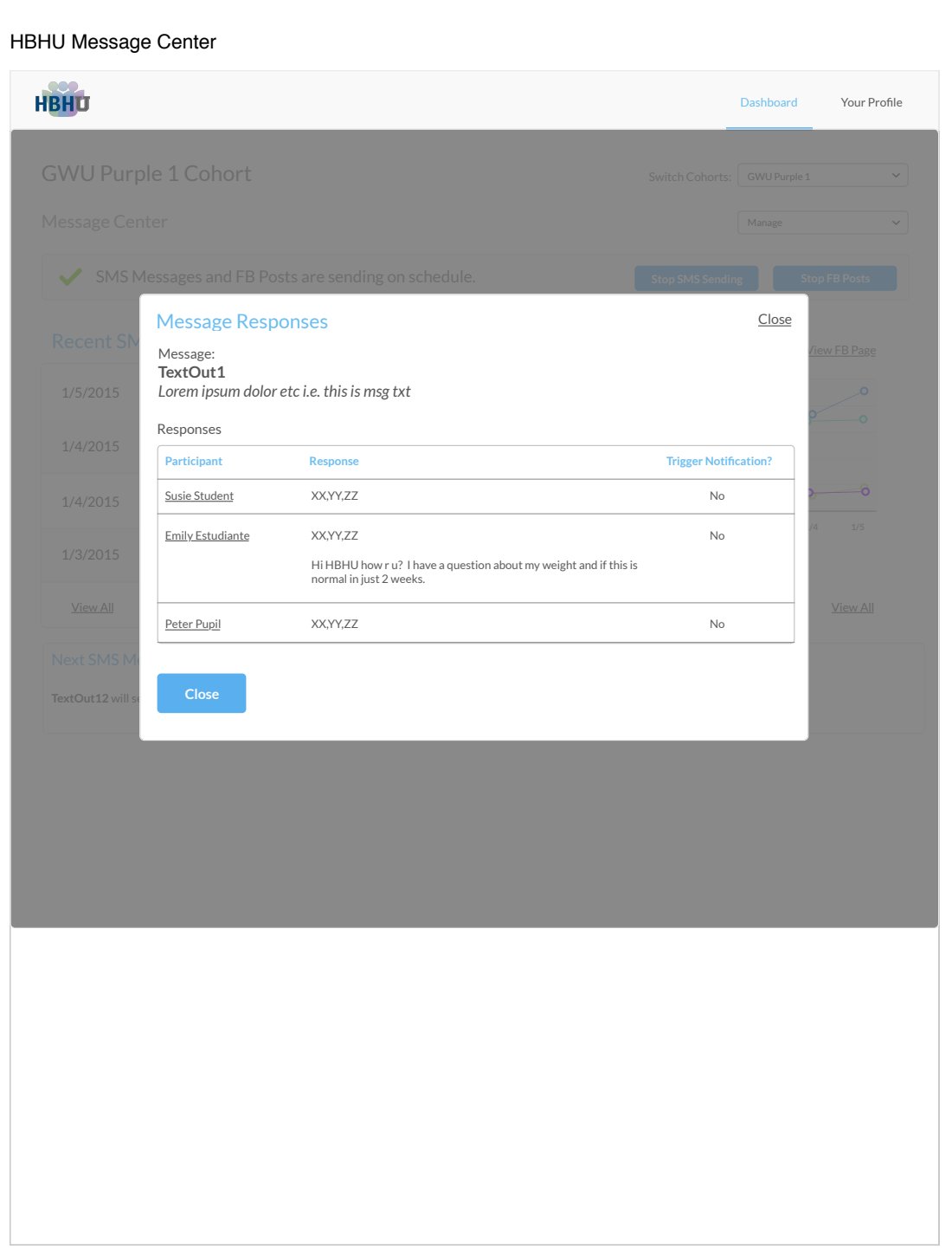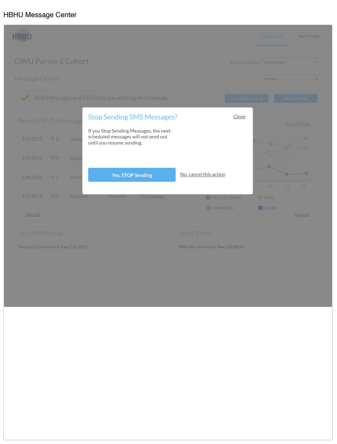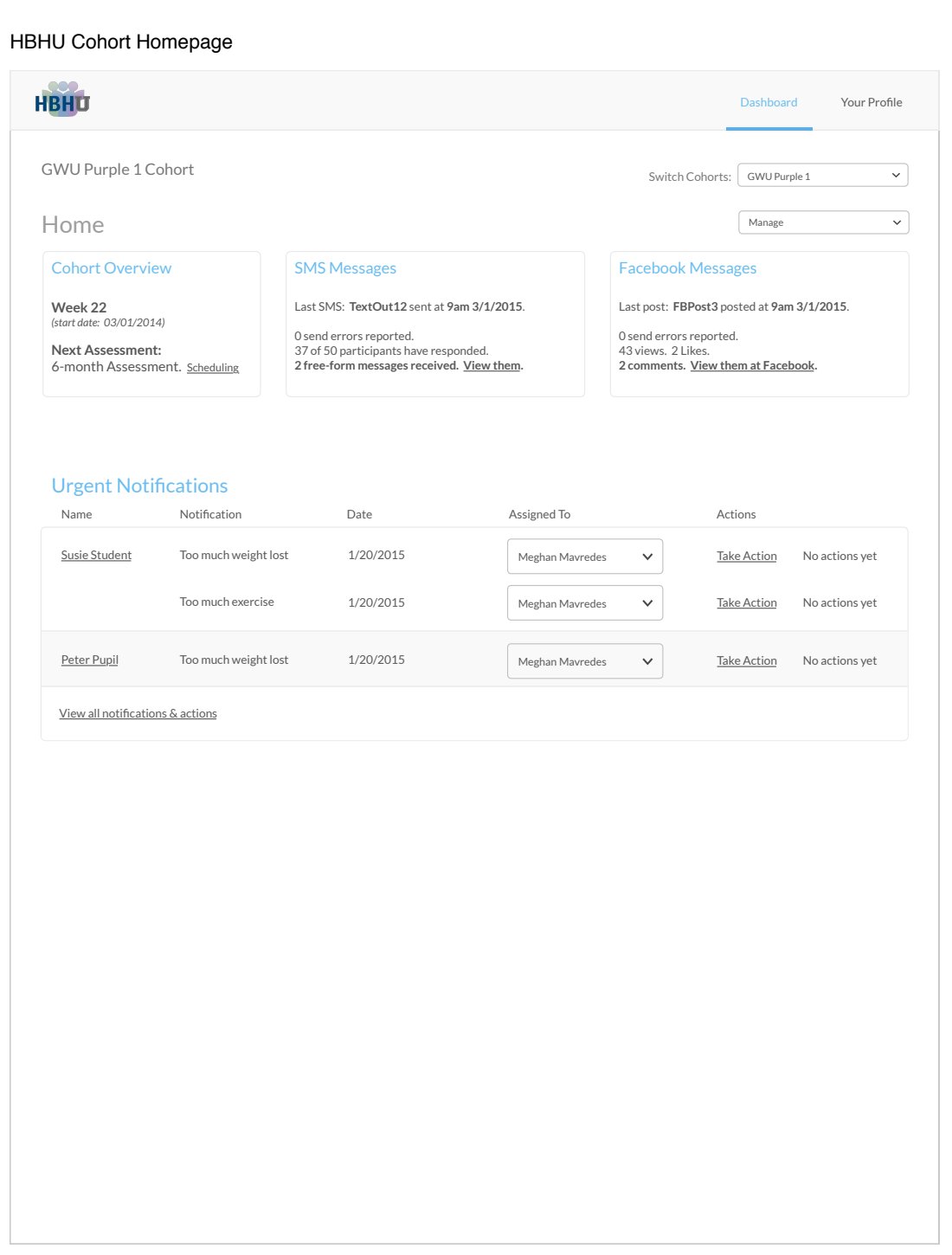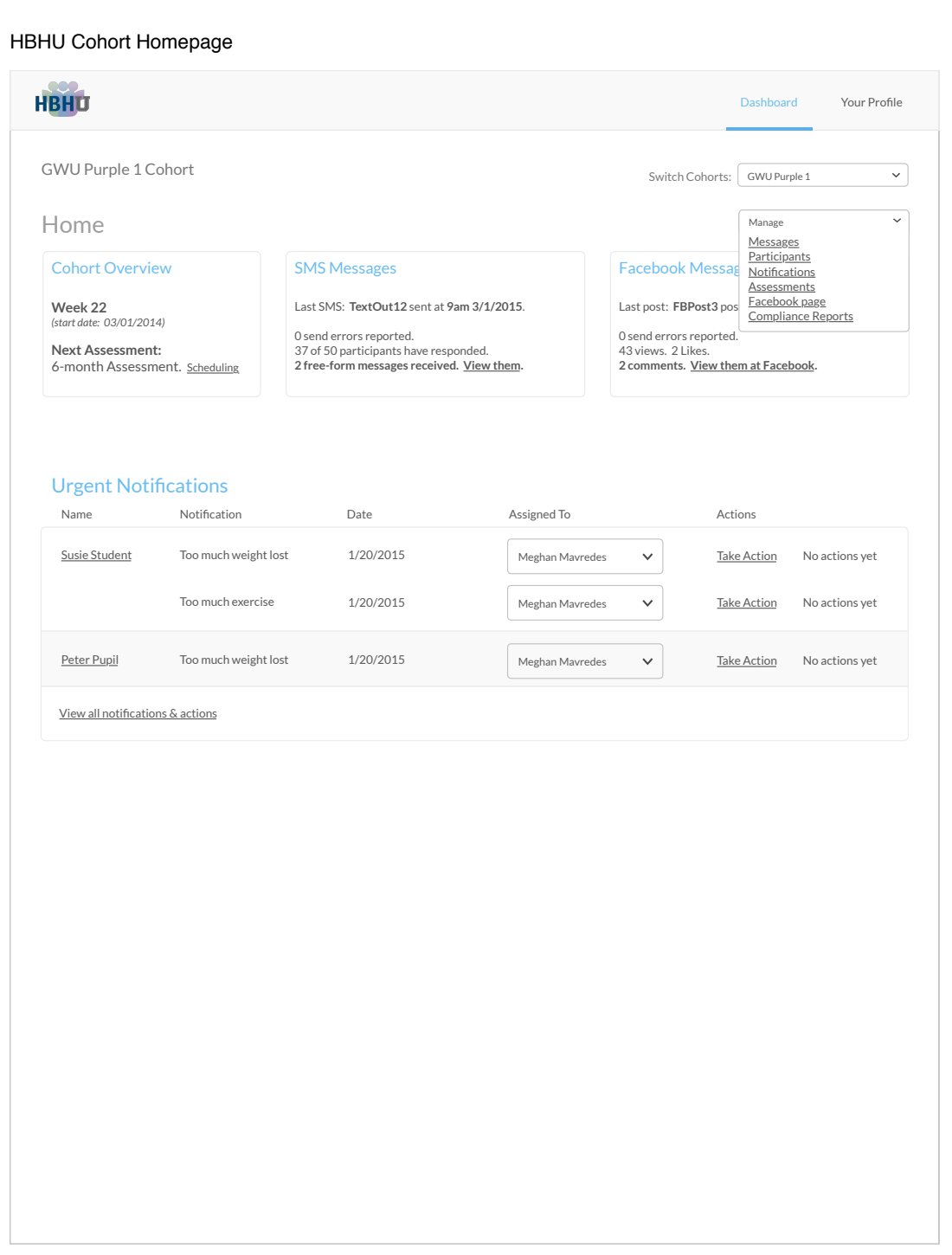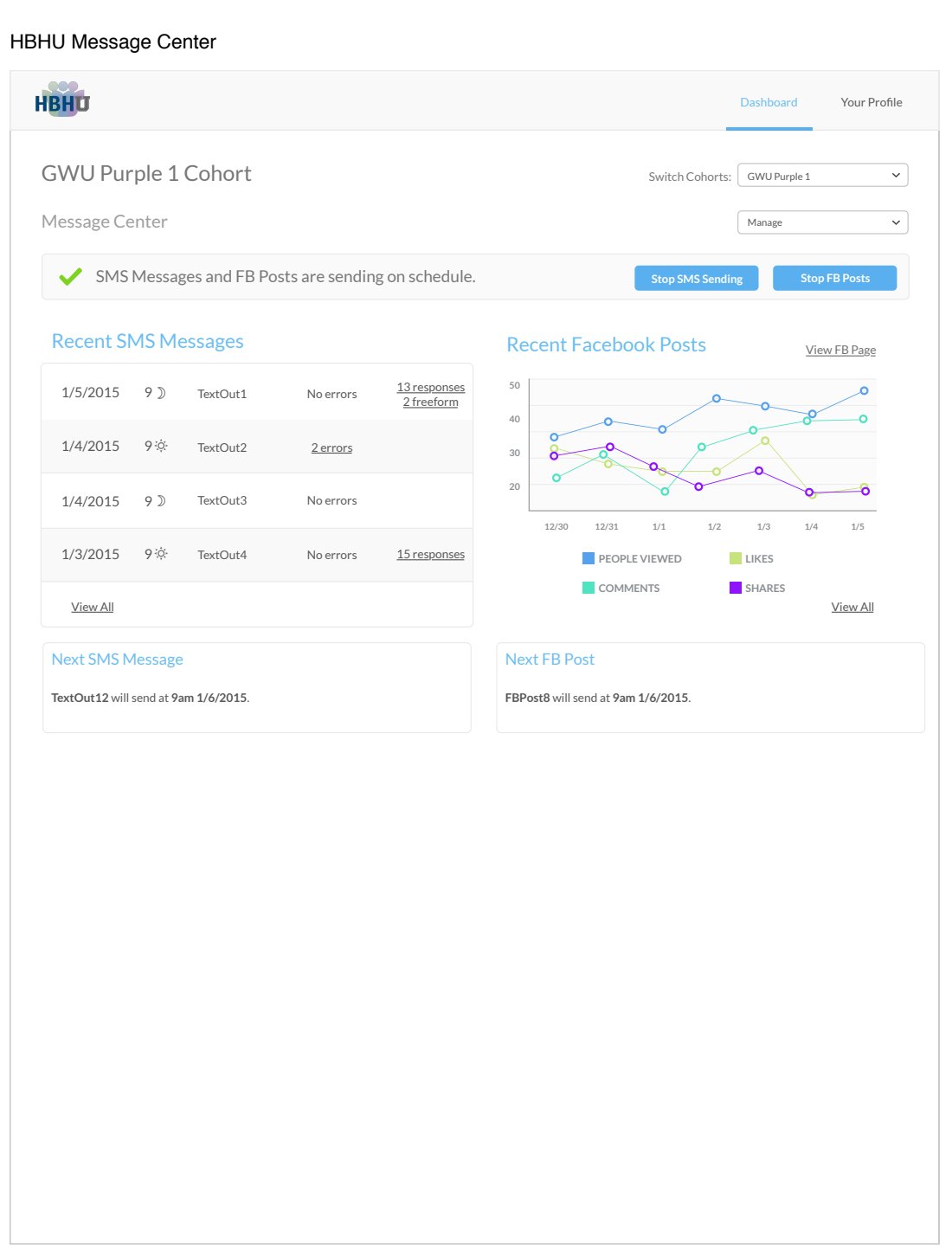 We built a platform empowering her team to run several parallel cohorts of college students receiving varying levels of direct intervention through SMS (text messaging) and Facebook. The platform enabled sending & receiving messages, tracking student-reported data about health & attitude, monitoring potentially-concerning changes in status, and more.